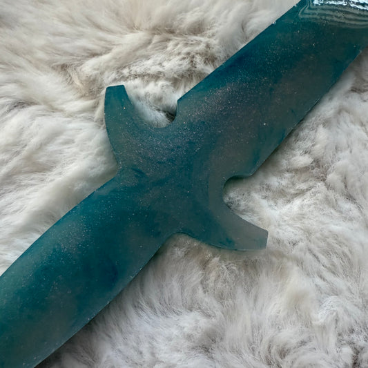 Each dagger is made from high-quality resin, featuring stunning finishes such as marbled swirls, shimmering metallic components, or translucent hues that catch the light beautifully. Whether inspired by ancient warriors, mystical sorcery, or celestial wonders, every piece is carefully designed to complement your character’s story. For display and cosplay purposes only, these daggers bring fantasy to life while remaining safe for conventions, photoshoots, and themed collections. Elevate your roleplay with a Resin Dagger—where art meets adventure.